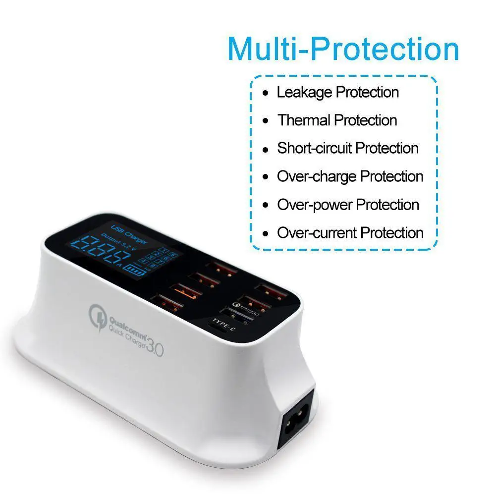 Universal Quick Charger with 8 USB Port Smart LED Display Phone power adapter charging dock for iph